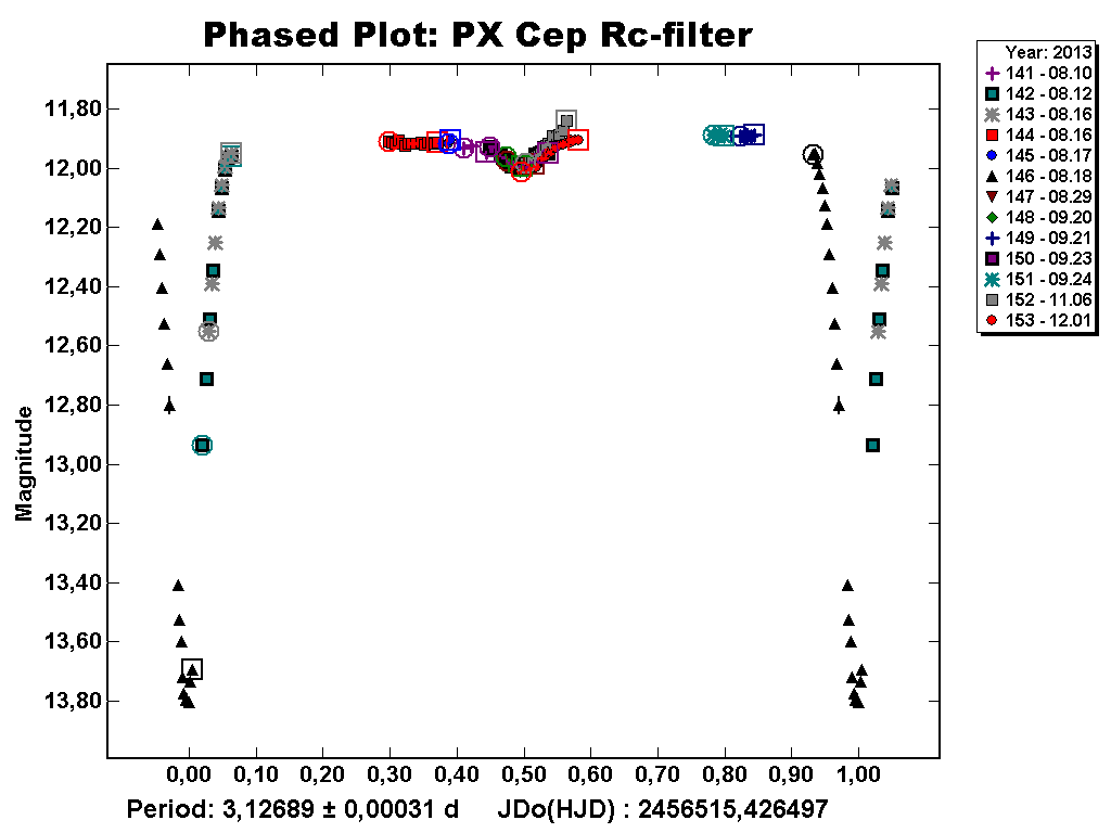 PX Cep: beobachtet über eine Zeitspanne von 168 Tagen, 512 Daten wurden in 18 Nächten gewonnen